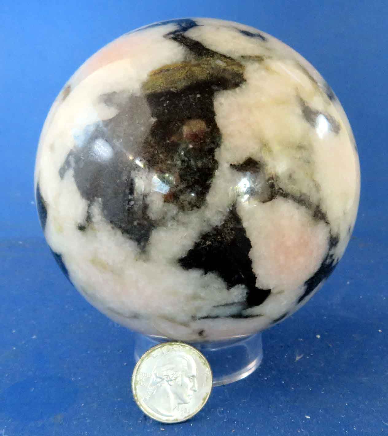 SILVER LACE ONYX SPHEREw/ Cherry Wood Stand